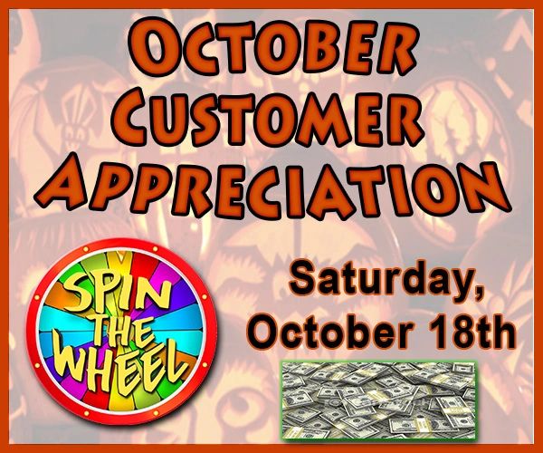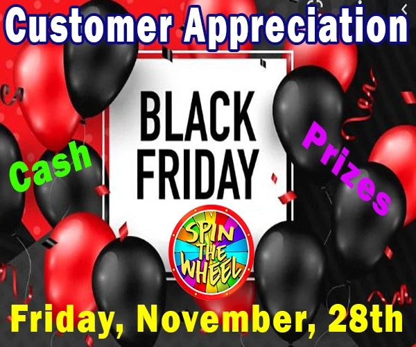 We appreciation all of our customers! So watch for special dates for Customer Appreciation and spin the Wheel for CASH & Prizes.